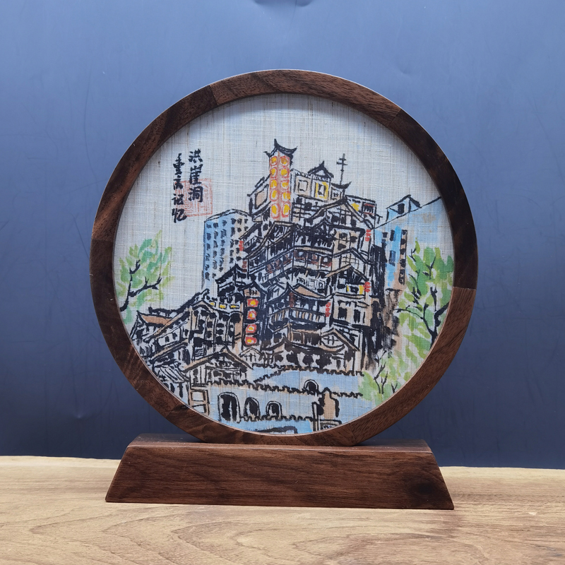 主题:来福士、长江索道、东水门大桥、洪崖洞、轻轨穿楼等 工艺:手工荣昌夏布,手绘图每件独品