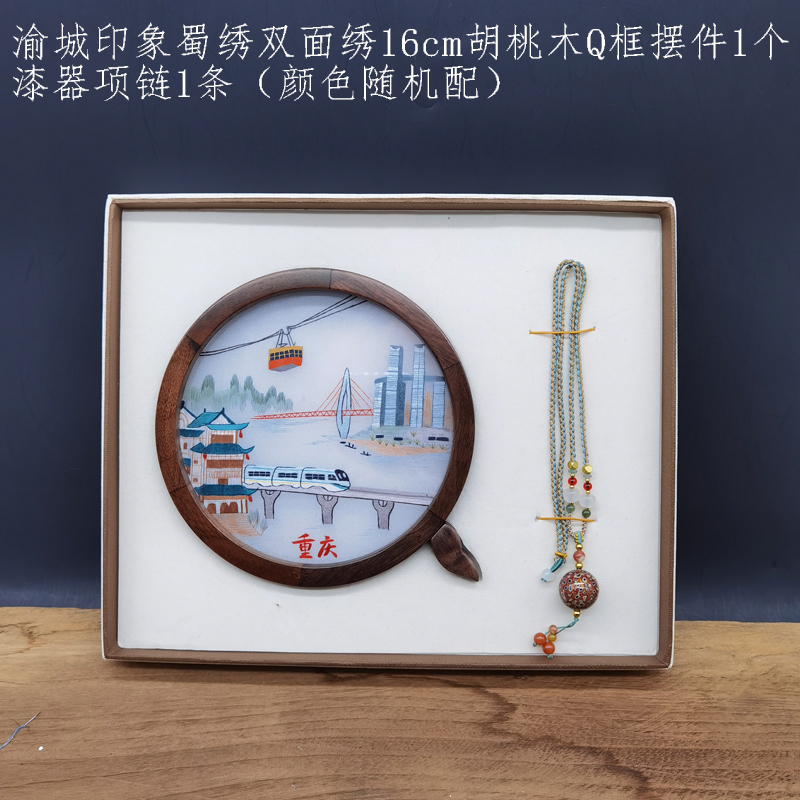 蜀绣渝城印象摆件+漆珠礼盒