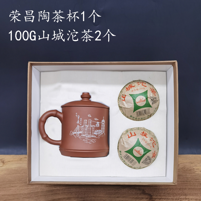 荣昌陶竹节杯简刻图版+2个沱茶礼盒218档