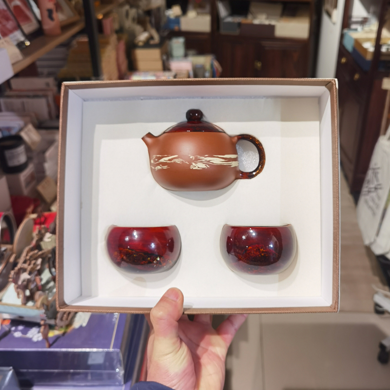 双非遗荣昌陶+漆艺茶具(壶+双杯)